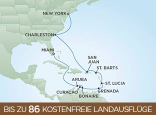 | über Oranjestad, Willemstad, Kralendijk, St. George's, Castries, Gustavia, San Juan, Charleston |