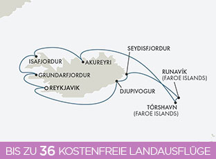| über Djupivogur, Seydisfjordur, Runavik (Faroe Islands), Torshavn (Faroe Islands), Akureyri, Isafjordur, Grundarfjordur |