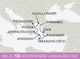 | über Kavala/Philippi, Thessaloniki, Volos, Athens (Piraeus), Mykonos, Heraklion (Crete), Marmaris, Izmir |