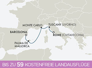 | über Palma de Mallorca, Monte Carlo, Monte Carlo, Livorno |