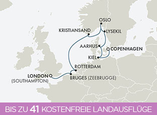 | über Brügge (Zeebrugge), Rotterdam, Kristiansand, Oslo, Lysekil, Aarhus, Kiel |