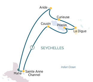 | über Saite Anne Channel, Thérèse Island, Cousin, Praslin, La Digue, Curieuse, Aride |