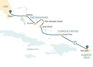 | über Grand Turk, Long Island, San Salvador Island, Exuma, Nassau |