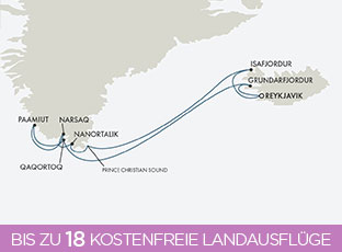 | über Grundarfjordur, Qaqortoq, Paamiut, Narsaq, Nanortalik, Isafjordur |