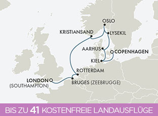 | über Brügge (Zeebrugge), Rotterdam, Kristiansand, Oslo, Lysekil, Aarhus, Kiel |