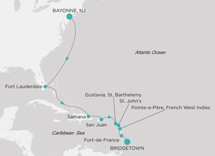 | über Fort Lauderdale, Samana, San Juan, Gustavia, St. Barthelemy, St. John`s, Pointe-a-Pitre, Fort-de-France |