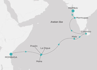 | über Mahe, Praslin, La DigueMale, Colombo, Mormugao (Goa) |