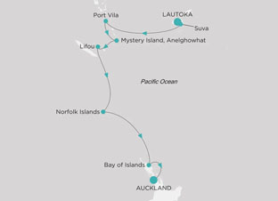 | über Suva, Mystery Island, Port Vila, Lifou, Norfolk Islands, Bay of Islands |