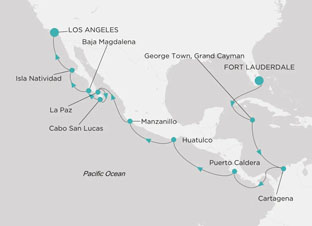 | über George Town, Cartagena, Panamakanal Transit, Puerto Caldera (San José), Huatulco, Manzanillo, La Paz, Cabo San Lucas (Bahia California Sur), Baja Magdalena, Isla Natividad |