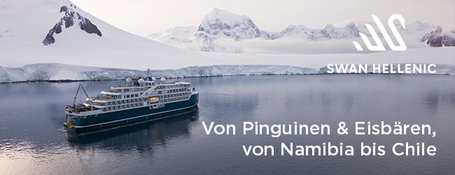 Swan Hellenic zeigt Ihnen die wirklich spannenden Orte der Welt. Sehen Sie Andengipfel, gewaltige Wanderdünen, die in den Ozean fallen, die trockenste Wüste der Welt und 500.000 Königspinguine auf einem Fleck. Es erwarten Sie Eisbären und Walrosse, Weinberge und unendliche Weiten. Erleben Sie Länder voll Charme, bunter Kultur und spannenden Menschen. Lassen Sie sich von VISTA TRAVEL individuell beraten und gehen Sie auf ein exklusives Expeditions-Reiseabenteuer mit maximal 190 Gästen.