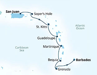 | über Saint Kitts & Nevis, Guadeloupe, Martinique, St. Vincent and the Grenadines, Grenada |