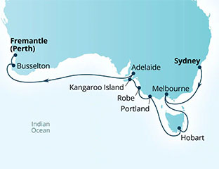 | über Melbourne, Hobart, Portland, Penneshaw, Adelaide, Busselton |