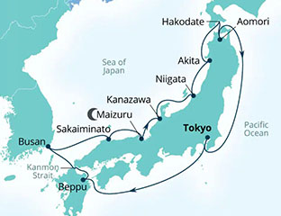 | über Beppo, Busan (Pusan), Sakaiminato, Maizuru, Kanazawa, Niigata, Akita, Hakodate, Aomori |
