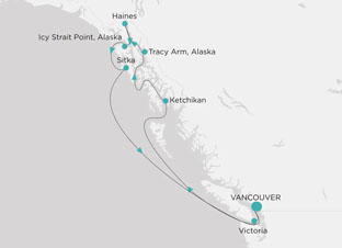 | über Ketchikan, Tracy Arm, Haines, Icy Strait Point, Sitka, Victoria |