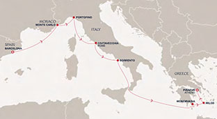 | über Monte Carlo, Portofino, Rom, Sorrent, Monemvasia, Milos, Athen, Patmos, Istanbul, Kusadasi (Ephesos) & Mykonos |
