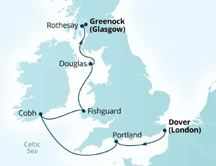| über Portland, Cobh, Fishguard, Douglas, Rothesay |